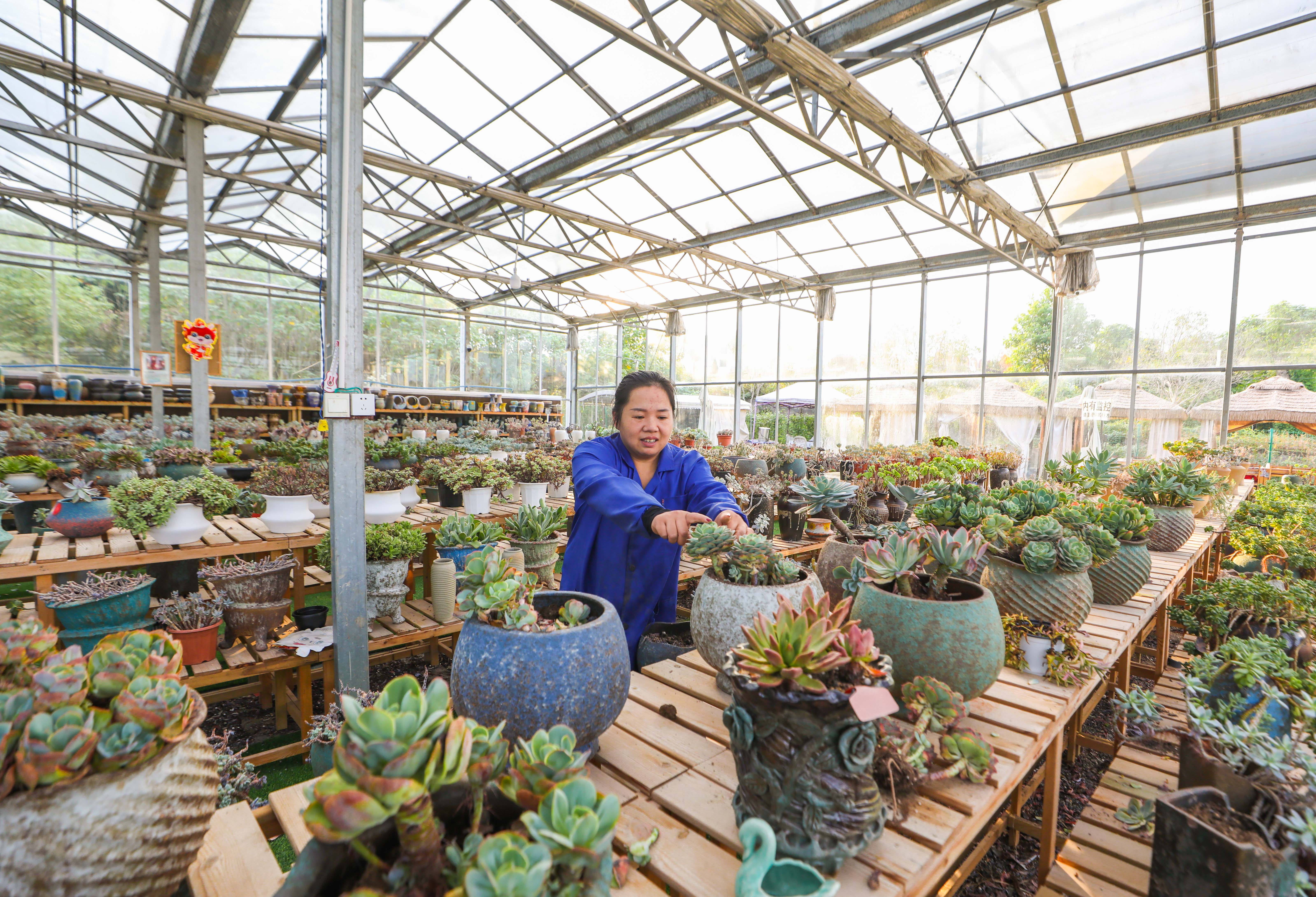 日前,在新民镇明月村多肉基地,工人正在在管护多肉,以确保多肉长势良好。据了解,该基地培育的多肉品种繁多,并采取以“线上+线下”的经销模式,将其销往全国各地,有效助力乡村振兴。记者丨龚长浩 编辑丨余方芳校