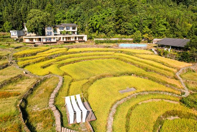 近日,桂阳街道十路村巴谷·宿集,青山环绕,金色稻田点缀其间,犹如一幅美丽的金秋画卷。记者丨龚长浩 编辑丨余方芳校对丨李 红 审核丨冉 义