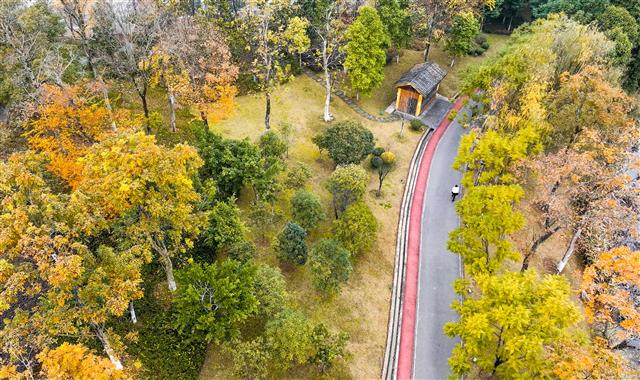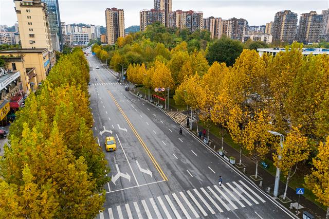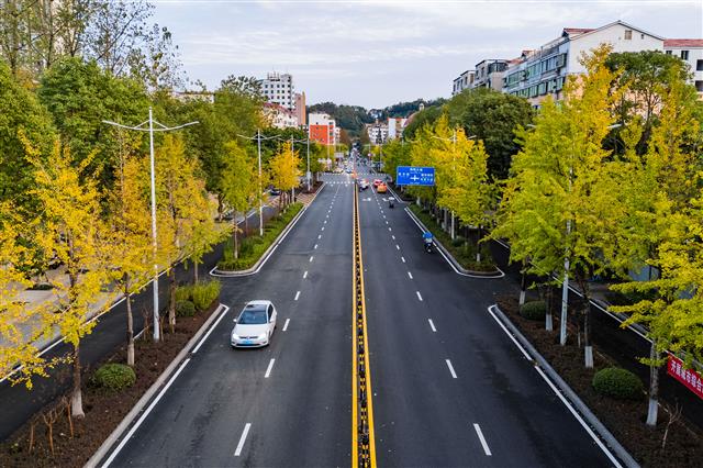 (桂阳路。)(桂阳路两侧绿化美景。)(层层叠叠的金色叶片扮靓街景。)(层层叠叠的金色叶片扮靓街景。)(层层叠叠的金色叶片扮靓街景。)初冬时节,城市街景被时光浸染。道路两旁,行道树层层叠叠的叶片将整条街