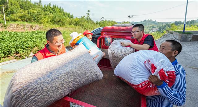村干部直播销售。装袋黑花生。驻村工作队和村民搬运黑花生。驻村工作队和村民搬运黑花生。驻村工作队和村民搬运黑花生。驻村工作队和村民将黑花生装袋。驻村工作队和村民将黑花生装袋。驻村工作队和村民分拣黑花生。