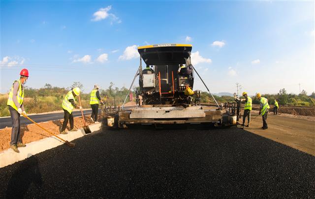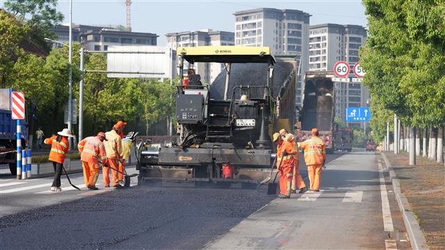 施工现场热火朝天沥青路面铺设正在建设中的道路压路机来回作业鸟瞰施工现场10月27日,G350澄溪至群力段新改建工程太平镇段,工人正配合工程车铺设沥青,压路机来回夯实路基,现场一派热闹景象。该项目是我县重点工程