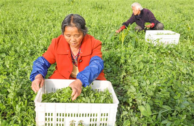 裴兴镇桂花村,工人在移栽榨菜。裴兴镇桂花村,工人在转运榨菜苗。裴兴镇桂花村,工人在移栽榨菜。翻土、挖窝、移栽……立冬时节,走进田间地头,随处可见村民正忙着抢抓时令,将绿油油的榨菜苗移栽到田里,呈现出一