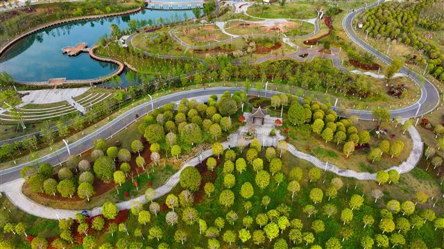 近日,在牡丹湖湿地公园,微微泛黄的树叶在微风中摇曳,“换上秋装”的公园如诗如画、美不胜收。近年来,我县以建设生态宜居城市为目标,着力营造幸福、和谐、文明、绿色的家园环境,不断提升群众获得感、幸福感。记