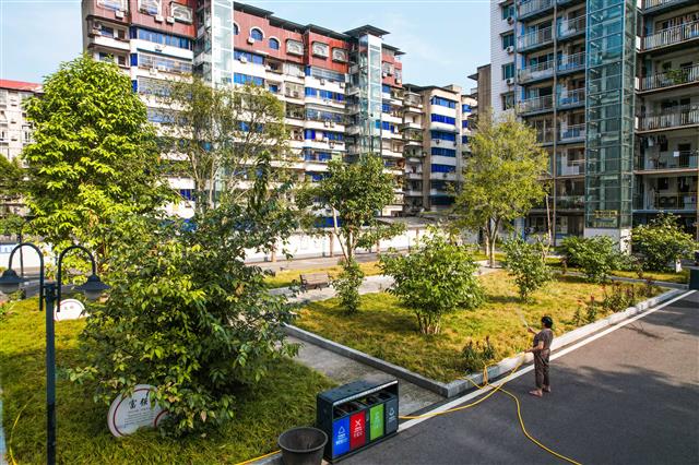 (干净、整洁的小区。)(管理员在给绿化浇水。)(市民休憩。)9月11日,在桂阳街道八一大院小区,市民正在绿化环境优美的休憩、闲聊,一派幸福和乐。得益于城市更新行动和老旧小区改造行动,八一大院小区房屋立面