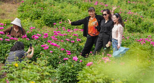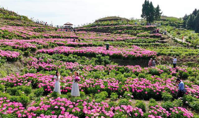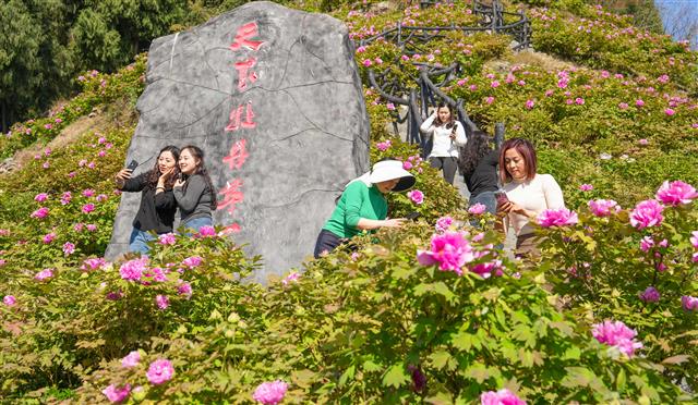 游客在拍照游客在拍照游客在赏花游客在拍照游客在拍照游客在赏花3月10日,恺之峰景区,山间的牡丹花盛开宜人,游客陶醉在花海里赏花。据了解,该景区面积6000余亩,其中牡丹花面积1000余亩。当前,牡丹花已陆续进入