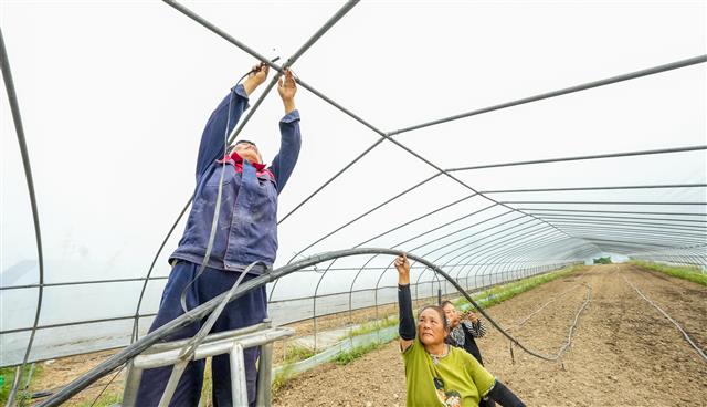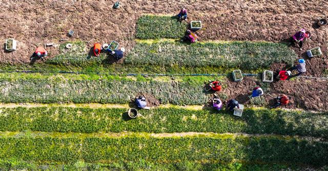 沙坪镇红旗村草莓基地,工人在管护草莓。沙坪镇红旗村蔬菜基地,工人在安装滴灌。新民镇明月村蔬菜基地,工人在打地。新民镇明月村蔬菜基地,工人在松土。9月23日,我县各乡镇农产业基地,工人们忙着耕地、整地和管