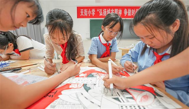 (活动现场。)(小朋友学习剪纸。)(小朋友学习剪纸。)9月29日,在桂阳街道天宝社区,社区工作人员、县教委示范幼儿园的小朋友和社区居民一起开展迎国庆活动。市民通过剪纸的方式来迎接国庆节,小朋友用绘画表达