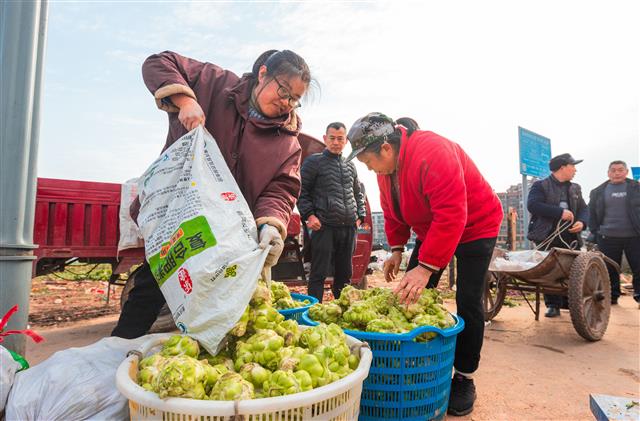 2月6日,在三溪镇江岭村青菜头基地,工人正忙着采收青菜头,准备供应到市场。据了解,该基地面积100余亩,当前正值青菜头大量上市的季节,业主采取“生鲜+菜头加工”两种方式供应周边市场,既满足春节期间市民“菜篮