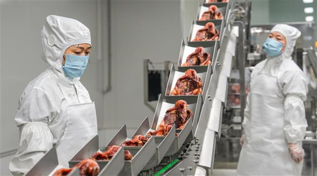 (转运。)(称重。)(装车。)(清洗。)(加工。)10月9日,砚台镇汪家社区莲藕基地,工人正忙着把收获的莲藕进行清洗、搬运、装车、加工等,一派忙碌的丰收景象。近年来,砚台镇种植2000余亩莲藕,并建立起加工