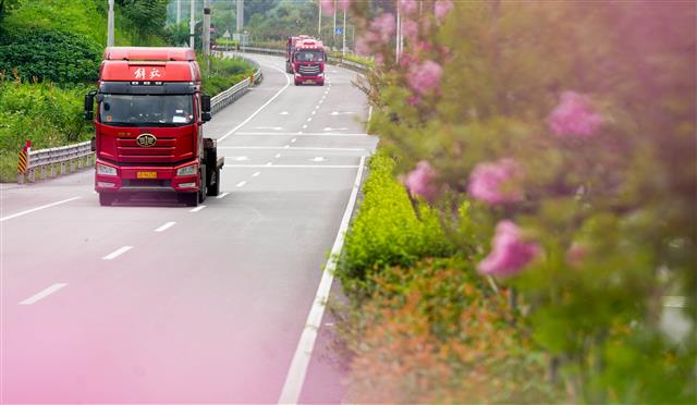 汽车驶过天香路明月茶谷路段。自驾游客络绎不绝。春日里,天香路上美人梅竞相绽放,粉霞般的花团沿公路铺展,车辆穿行其间,仿佛驶入一幅流动的春日画卷,引得不少游客前往观赏打卡。近年来,我县在明月山沿线栽植美