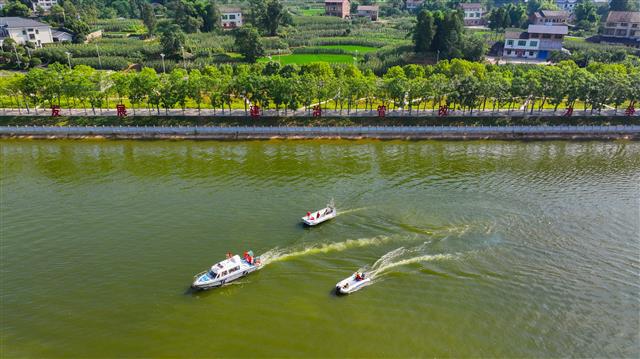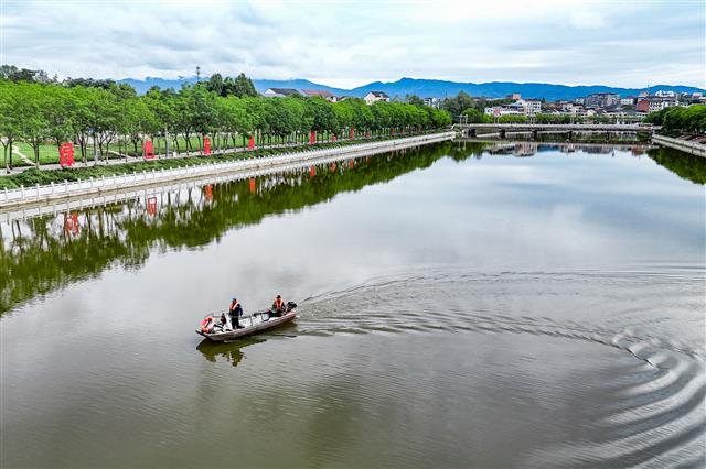 近日,在龙溪河长龙镇段,清漂船划过河面,留下一道道波纹,为平静的河面平添了一份涟漪,尽显自然生态之美。近年来,我县认真践行“绿水青山就是金山银山”的理念,通过“数字治河+人工保洁”、修筑沿河绿道、加快
