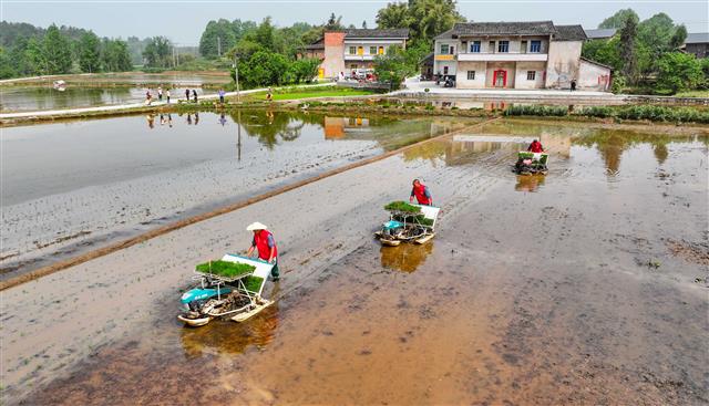 3月6日,高峰镇界尺社区,村民在平整秧田。3月9日,高安镇新曲村,村民驾驶农机在耕田准备育秧。3月6日,新民镇明月村,村民在育秧。3月9日,高安镇新曲村,村民在育秧盖膜。3月6日,新民镇明月村,村民在育秧。3月6