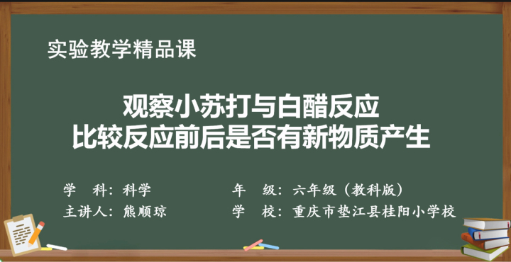 观察小苏打与白醋反应比较反应前后是否有新物质产生——主讲人:熊顺琼(重庆市垫江县桂阳小学校)