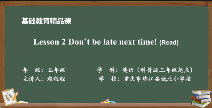 Lesson 2 Don’t be late next time!(Read)——主讲人:赵程程(重庆市垫江县城北小学校)