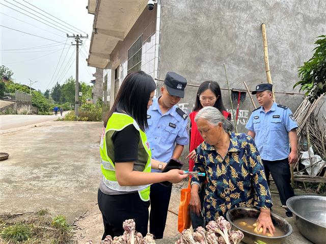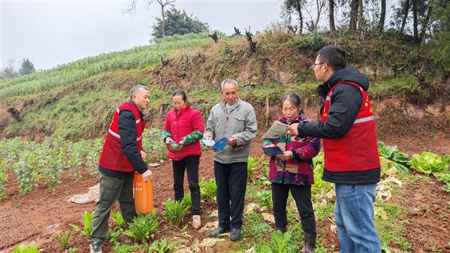 5月8日,永平镇联合辖区派出所深入村(社区)开展禁种铲毒踏查宣传。工作人员向辖区群众宣传禁毒知识。记者 廖佳欣 摄当天,工作人员结合乡镇地区毒品问题治理情况,抓住毒品原植物播种、出苗、收获的关键节点,采取