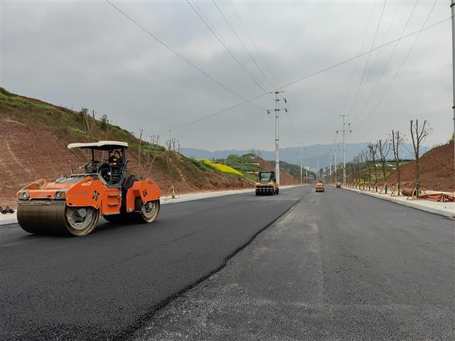 3月18日,记者走进垫江工业园区龙凤路新建道路施工现场,沥青摊铺机、压路机轰鸣声不绝于耳,施工人员有序作业,运料车来回穿梭,有序进行沥青路面摊铺。新建道路正在进行沥青路面摊铺。“沥青路面开始摊铺意味着道