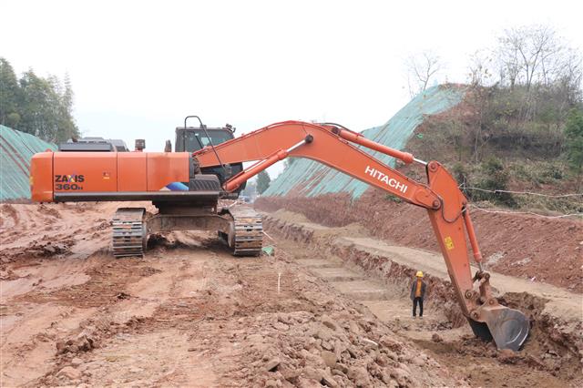 近日,记者在垫江工业园区春花支路新建道路二期项目施工现场看到,大型挖掘机、推土机正开足马力进行路基回填、压实等作业,一派繁忙。道路施工现场。记者 杜俊 摄目前,项目已完成雨污水管网施工,正在进行路基施工