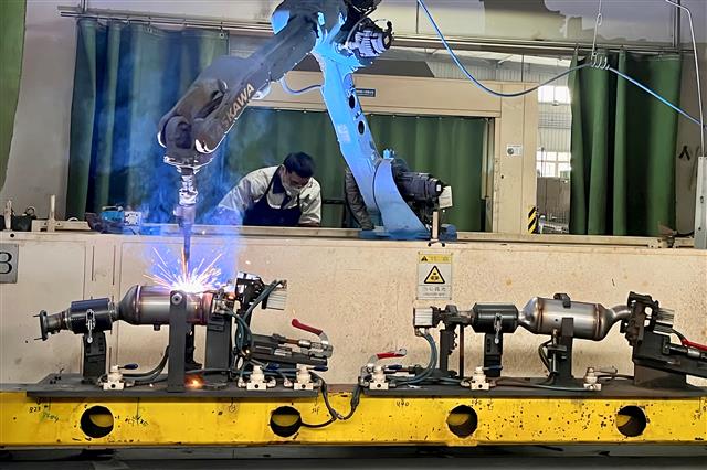 2月28日,在重庆辉虎催化剂有限公司机加生产车间内,一台台机械化生产设备在技术工人的操作下,进行着制浆搅拌、定量涂覆、风干、焙烧、封装、焊接、检测等不同工序的生产,呈现出一派蓬勃向上的景象。三元催化器陶