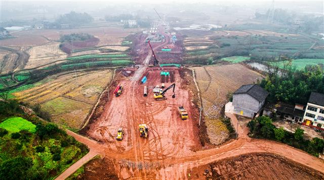 1月10日,在G50垫江南出口连接线项目(即垫江县G350澄溪至群力段新改建工程)一标段施工现场,施工人员正有序进行一、二级公路清表和路基土石方开挖填筑、淤泥换填等施工,以及大型结构工程黄家坝中桥桩基开钻,现场