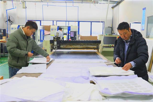 1月24日,记者走进重庆瑞米得服饰有限公司看见,新购置的设备正在安装等待投用,已投用的生产线机器轰鸣,缝边、压线、熨烫、包装......工人们动作娴熟,有条不紊。工人正抓紧生产。据了解,重庆瑞米得服饰有限公司