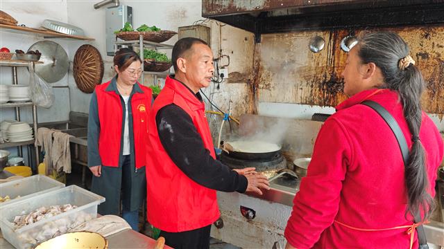 连日来,县消防救援局联合县公安局、县应急局、县住房城乡建委等部门,开展人员密集场所动火作业专项整治行动,严厉查处违规动火行为,全力消除火灾隐患。(检查现场。谭彬 摄)整治中,县消防救援局执法人员先后深