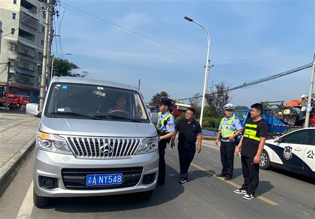 9月19日,普顺镇开展国庆节前农村交通违法行为专项整治行动,预防和减少农村道路交通事故发生,保障道路交通安全。(工作人员对来往车辆进行检查。由受访单位提供)行动中,工作人员在重点路段、重点时段、重点区域