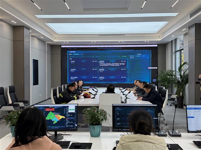 日前,桂阳街道开展高层消防实战综合演练。“金科小区1栋2单元12层冒出滚滚浓烟,请立即组织人员救援。”演练现场,桂阳街道基层治理指挥中心“141”基层智治平台收到一条火灾预警信息。随后,指挥中心迅速反应,通