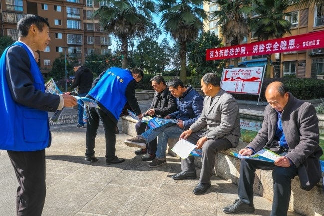桂阳街道挨家挨户开展雨棚和防护网整治宣传