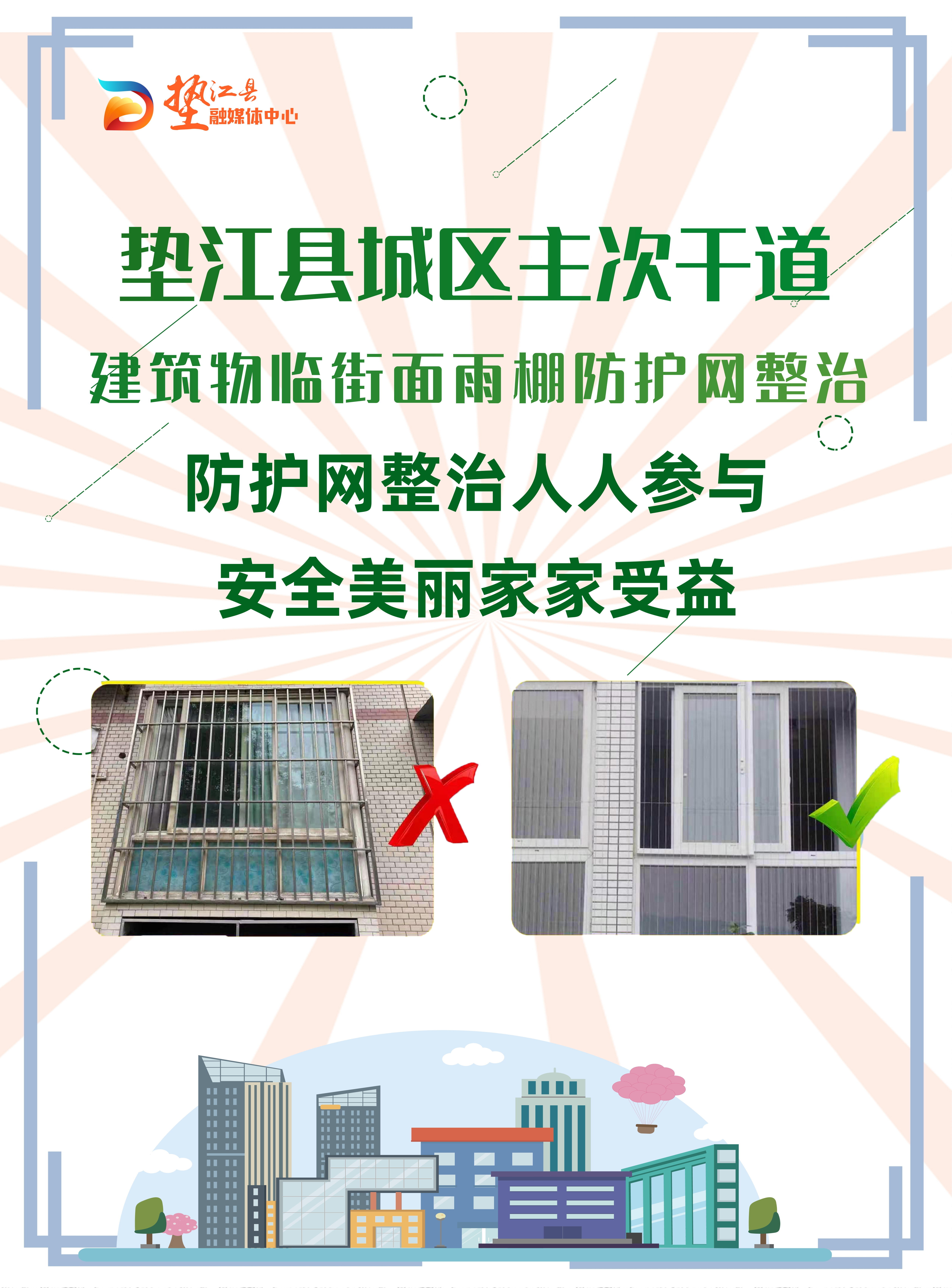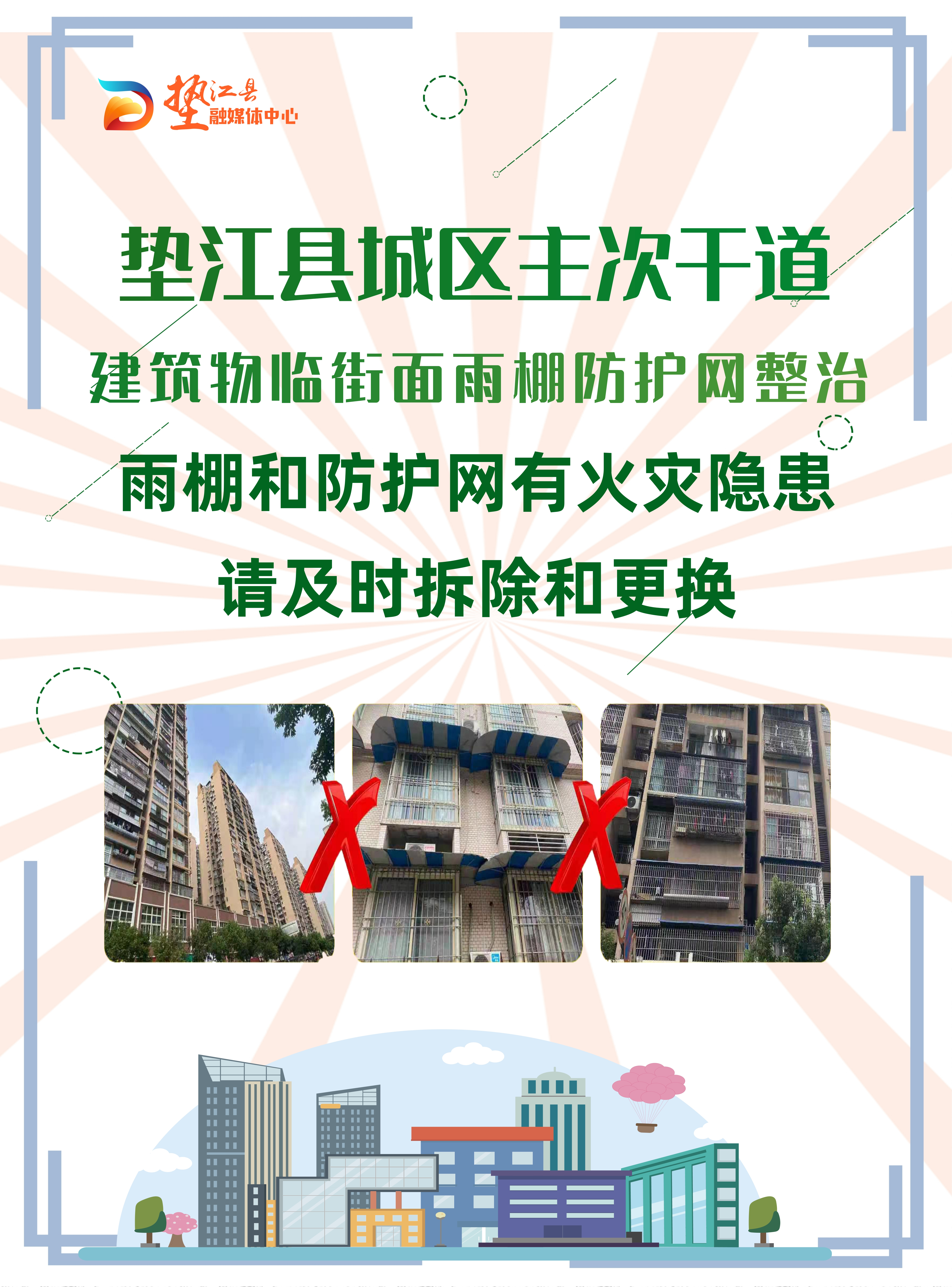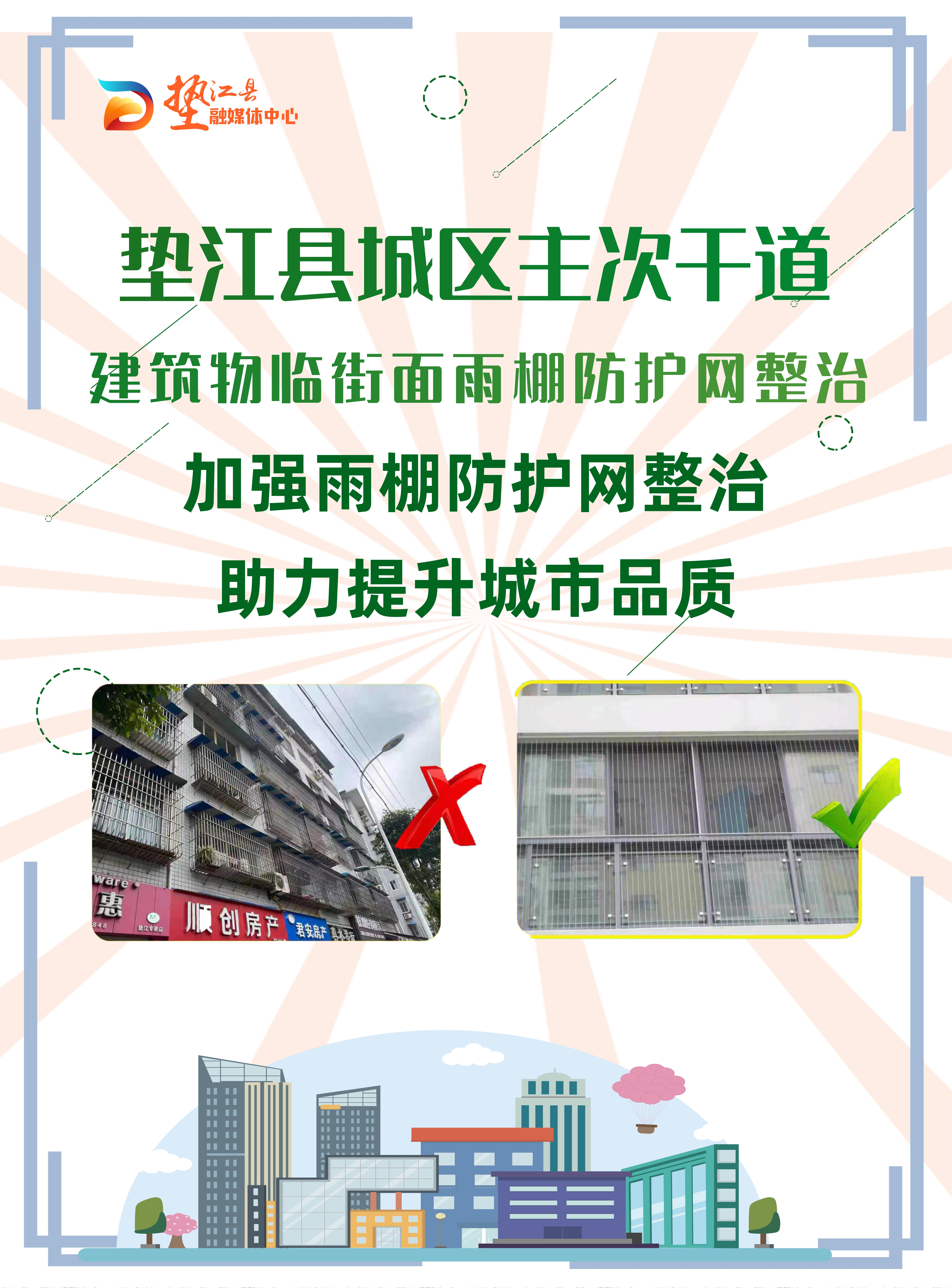海报(多图)|垫江县城区主次干道建筑物临街面雨棚防护网整治行动