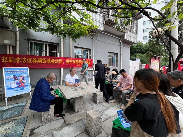 近日,重庆农商行垫江支行联合桂溪街道红光社区、集体社区,开展“抵制非法证券期货基金活动 保护投资者合法权益”反诈宣传。工作人员现场讲解反诈知识。记者 兰沫渃 摄活动中,重庆农商行垫江支行工作人员走进社区