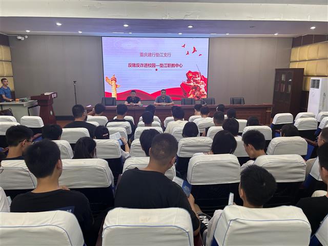 9月17日,建行垫江支行金融知识宣讲团走进县职教中心开展“金融为民谱新篇 守护权益防风险”主题金融知识宣传活动,普及金融安全知识,提升学生金融安全意识。(工作人员向学生宣讲电信诈骗知识。受访单位供图)工作