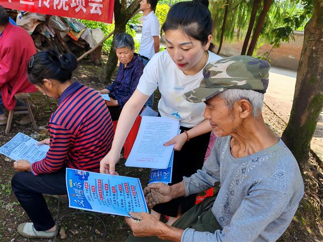 5月27日,永平镇到石平村开展反诈宣传进院坝活动。工作人员向老年人发放宣传单。记者 周迎迎 摄活动中,工作人员以电信养老诈骗实际案例为切入口,深入浅出讲解了提供养老服务、投资养老项目、销售养老产品等六种涉