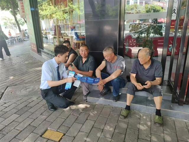 连日来,桂阳街道采取多种宣传方式,在辖区全方位开展反诈宣传。工作人员向商户宣传讲解反诈知识。记者 兰沫渃 摄宣传中,街道组织干部职工、社区网格员等线上线下双向发力,线上利用LED显示屏、治安巡逻车累计播放