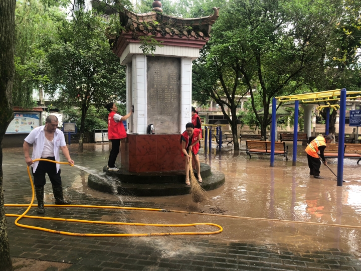 2020-07-20高安镇:组织社区干部、志愿者开展灾后清淤消毒工作