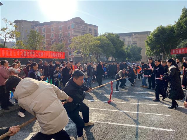 “加油!加油!加油……”12月27日,在春花社区举办的“党建领航聚合力,阳光邻里促和谐”庆元旦活动中,市民们以小区楼栋为单位,分成数支队伍开展拔河比赛。随着一声令下,双方队员们迅速进入状态,双脚蹬地、身体后倾,紧紧攥住手中长绳展开较量,呐喊声、加油声、欢笑声此起彼伏,将现场氛围一次次推向高潮。