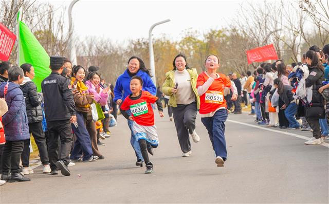 (家长学生奋力奔跑。)