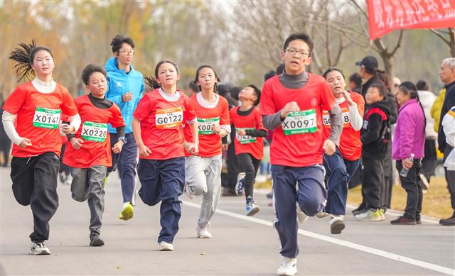 (家长学生在赛场奔跑。)