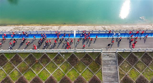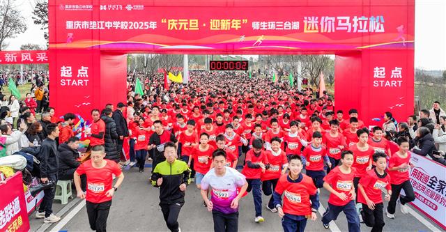 12月28日,垫江中学校“庆元旦·迎新年”迷你马拉松在三合湖湿地公园举行。全校师生、学生家长共计5000余名跑者开展环湖赛跑,成为了冬日里一道靓丽的风景线。