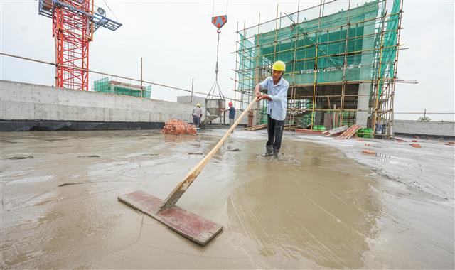 工人抓紧施工。