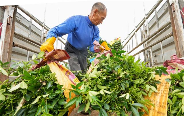 (花椒装车。)