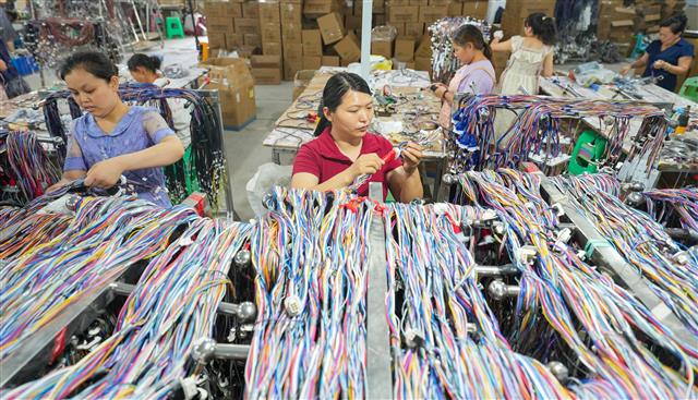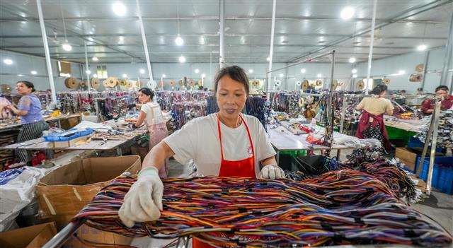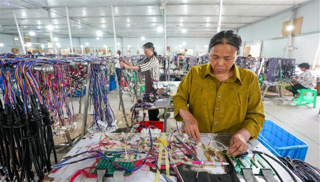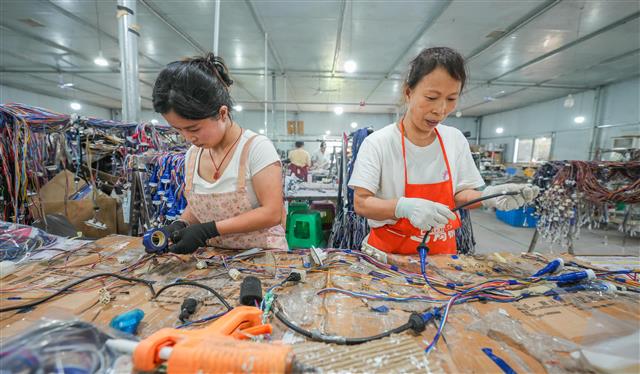6月17日,长龙镇高桥社区一微小企业生产车间,工人各司其职,赶制一批家电电源线。据了解,该微企主要从事冰箱、冰柜和洗衣机等家电电源线生产,产品通过“一带一路”远销泰国、斯洛文尼亚等国家。