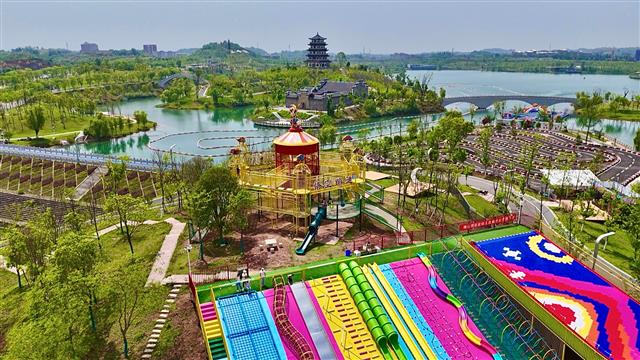 日前,记者在东部新区获悉,位于三合湖湿地公园的欢乐王国乐园各类设施已经投入试运营,预计6月1日正式营业。