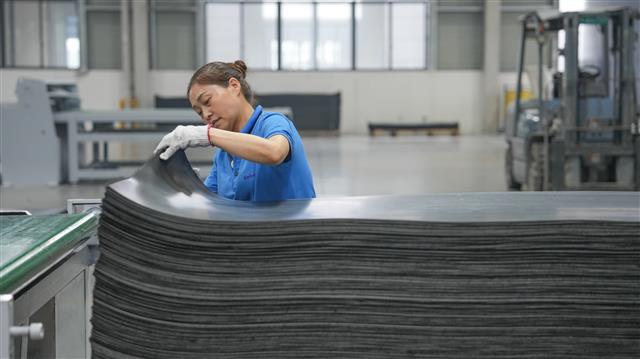 据了解,该公司以数字化、智能化、绿色化为引领,通过建智能化工厂打造自动吸塑生产线、内饰发泡线和模压生产线各16条,机器人自动切割生产线40条,年产汽车隔音板材及塑料板材4.5万吨、汽车前围隔音部件260万套、挡泥板200万套,是比亚迪、吉利、长城和赛力斯等汽车品牌的一级供应商。