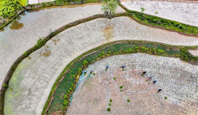 (村民插秧。)
