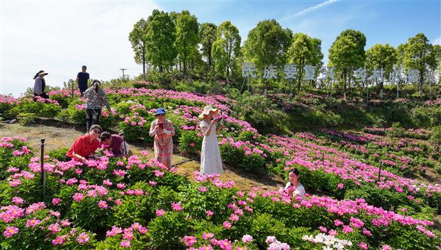 4月20日,曹回镇徐白村芍药花基地连片芍药花进入盛花期,络绎不绝的游客前往基地赏花,人气火爆。