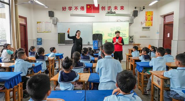 4月22日,澄溪镇天台小学校,该镇人大代表和学校老师一起,通过带领学生观察地球仪、讲解垃圾分类知识和观察绿色植物等方式,让学生们树立爱护环境,保护自然的良好习惯,共同迎接第56个世界地球日的到来。