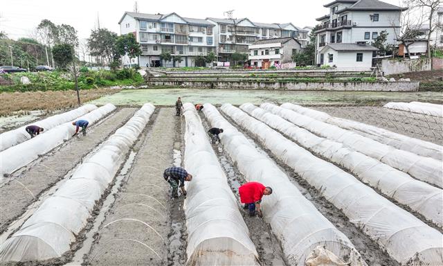 (3月9日,沙坪镇毕桥村,村民在育秧。)