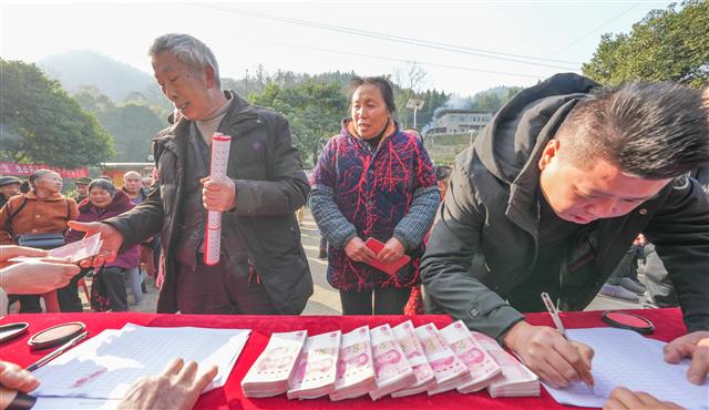1月16日,桂阳街道群山村,200余名村民正在“分红”,现场热闹非凡。据了解,该村坚持党建统领,按照“盘活闲置、壮大村集体、共同致富”的思路,盘活废旧厂房、仓库和老旧民房等闲置资源,打造一批生态旅游基地、休闲康养产业和研学基地,壮大村集体经济。