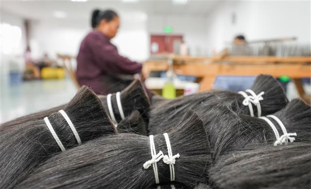 据了解,该公司主要为高端发制品提供优质原材料,年产量8吨,其中30%的产量借助“一带一路”远销东南亚地区。