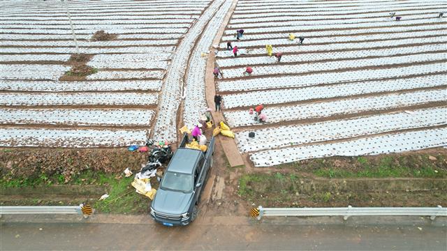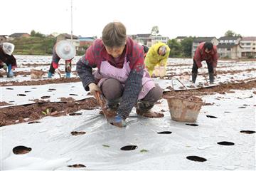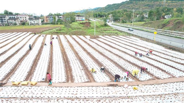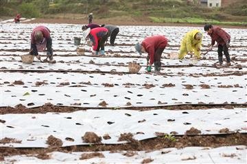 11月25日,桂溪街道玉河社区芍药花基地,工人正在移栽芍药种,现场一派繁忙景象。